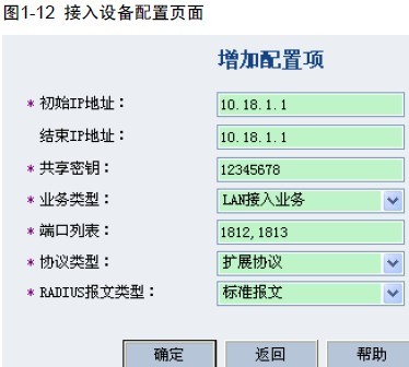 设置认证及计费的端口号分别为 1812 和1813;