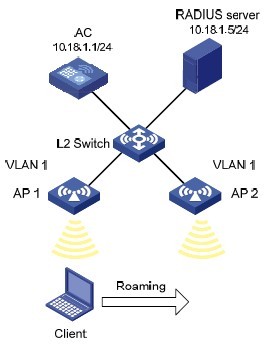 AC、AP 1 和AP 2 在VLAN 1 中,客户端先通过AP 1 连接至无线网络,然后漫游到与同一无线控制器相连的AP 2 上。二、组网图