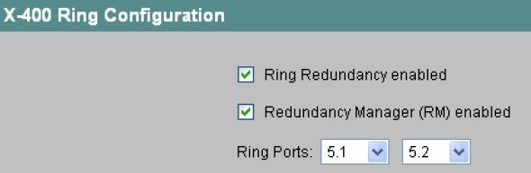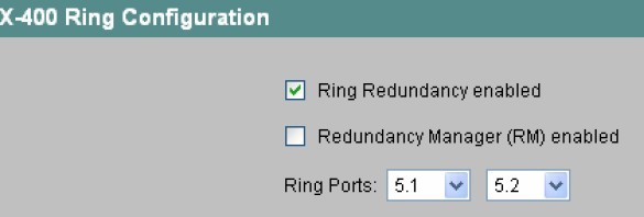 ring redundancy enabled 勾选, Redundance Manager(RM) enable 不勾选.且选好自己的环端口.