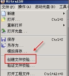 菜单栏→文件→打开→打开需要做文件校验的映像文件→菜单栏→创建文件校验(见图1)→