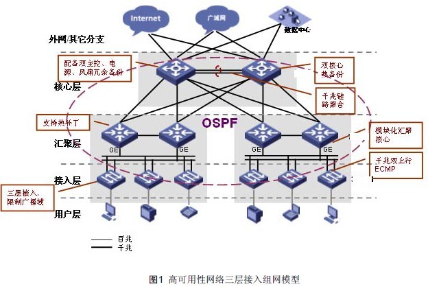 本方案推荐的高可用性典型组网模型考虑了当前常用的网络应用结构,不会为了适应高可用性网络部署而影响当前的网络应用.