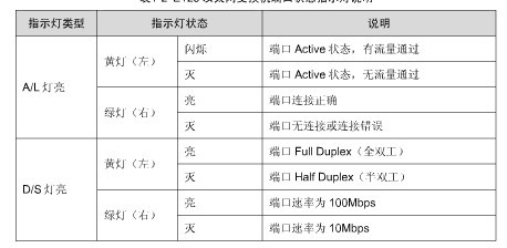 其作用和目的是:方便用户根据需要查询并确认当前端口的状态,比如先将指示灯切换到D/S状态,观察各个灯的灭、亮、闪烁状态,最后对应下表得出结论:
