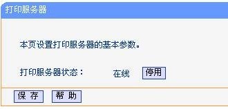 在使用TL-WDR4310的打印服务器功能之前,首先要确保局域网中的电脑已安装连接到TL-WDR4310的打印机驱动程序。然后在路由器管理界面菜单“网络共享”-“打印服务器”中将打印服务器状态确认为“在线”,如下图所示。