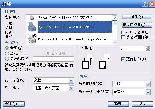 在打印文件时,选择正确的打印机型号即可,与普通的打印并无区别,如下图所示。