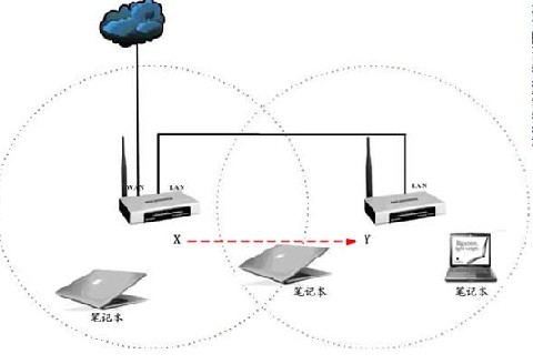 无线客户端用户从X位置移动到Y位置,都能保持网络连接。在使用时,无线网卡能够自动发现附近信号强度最大的AP,并通过这个AP实现对整个网络资源的访问。 无线漫游网络中,无线AP最好采用同品牌同型号同版本的产品。本文中以TL-WR641G+为例。