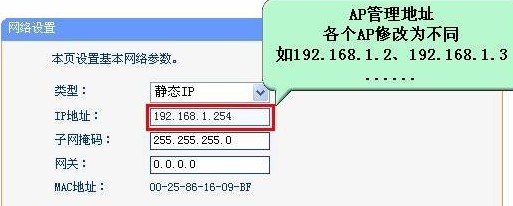 1、 “网络参数”。设置各AP管理地址为不同,避免IP地址冲突。