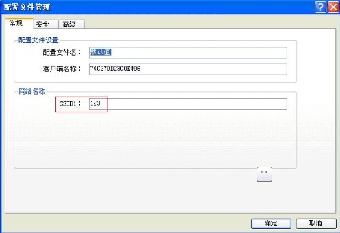 步骤4:点击确定后,在“常规”选项卡中会要求输入一个网络名称,如:本例中输入了“123”这个网络名称。