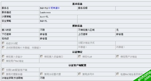 在CAMS上配置dot1x认证项: