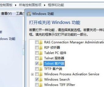 解决办法:在windows功能里面 安装telnet功能,如图: