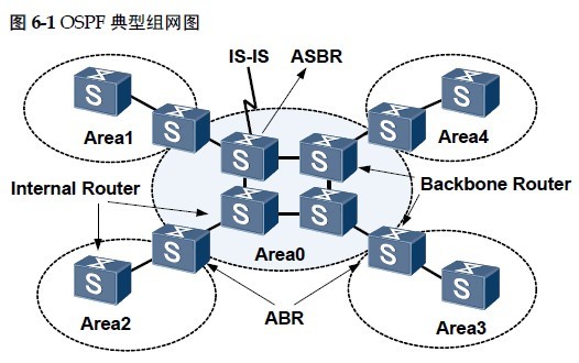 通过图6-1,可以了解到运行OSPF的网络中最重要的两个概念:区域和不同类型的设备。随着网络规模日益扩大,设备数量的增多会导致LSDB非常庞大,导致设备负担很重。OSPF协议通过将自治系统划分成不同的区域(Area)来解决上述问题。区域是从逻辑上将设备划分为不同的组,每个组用区域号(Area ID)来标识。区域的边界是设备,而不是链路。一个网段(链路)只能属于一个区域,或者说每个运行OSPF的接口必须指明属于哪一个区域。划分区域后,可以在区域边界设备上进行路由聚合,减少通告到其他区域的LSA数量。另外,还可以最小化由于网络拓扑变化带来的影响。