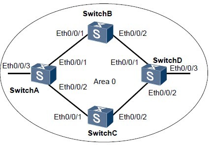 l SwitchA、SwitchB、SwitchC和SwitchD之间通过OSPF协议达到IP网络互连的目的。