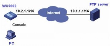 WX5002作为FTP客户端,从FTP服务器上下载新的启动文件aaa.bin。FTP服务器的IP地址为10.1.1.1/16。服务器上已设置设备登录FTP服务器的用户名为abc,密码为pwd。PC通过Console口对WX5002进行操作。