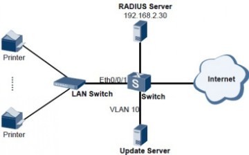如图2-4所示,某公司内部大量用户终端通过Switch(作为接入设备)的接口Eth0/0/1接入网络。在该网络运行一段时间后,发现存在用户对网络进行攻击。为确保网络的安全性,管理员需对用户终端的网络访问权限进行控制。只有用户终端通过认证后,Switch才允许其访问Internet中的资源。