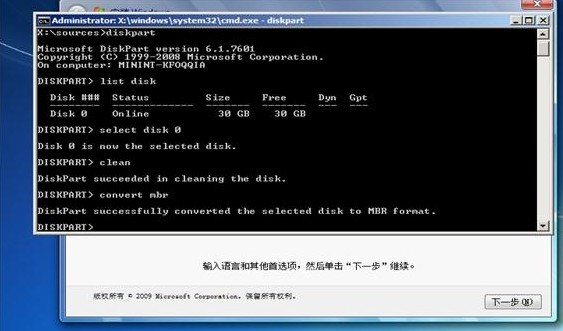 F.输入“convert mbr”命令并按下“回车”键来将硬盘的分模式从GPT模式转换为MBR模式: