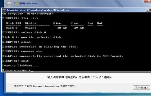 G.输入“exit”命令并按下“回车”键退出Diskpart模式,之后,再次“exit”命令并按下“回车”键退出退出CMD命令行模式: