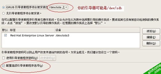 接下来的磁盘划分略过,进入grub配置页面,要按grub引导放在哪个盘,如果是U盘,则要修改,选择配置高级引导装载程序选项,下一步